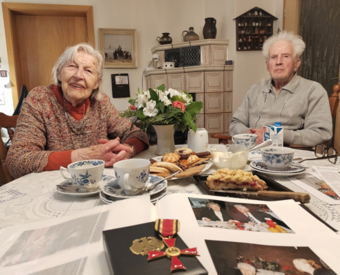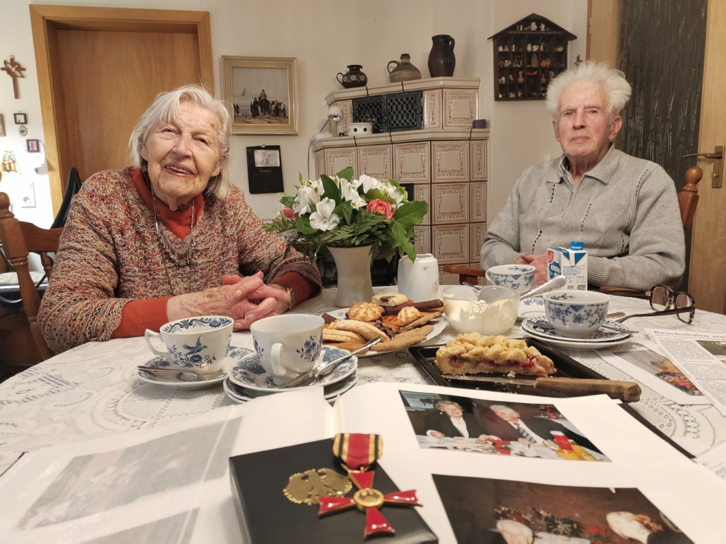 Feinstes Gebäck steht auf dem Tisch, der Kaffee ist bereits gekocht – eine tatkräftige, geistig fitte Frau spricht mit uns, zwischendurch klingelt das Telefon und Besuch schaut noch kurz herein. Es ist einiges los bei Familie Rau.